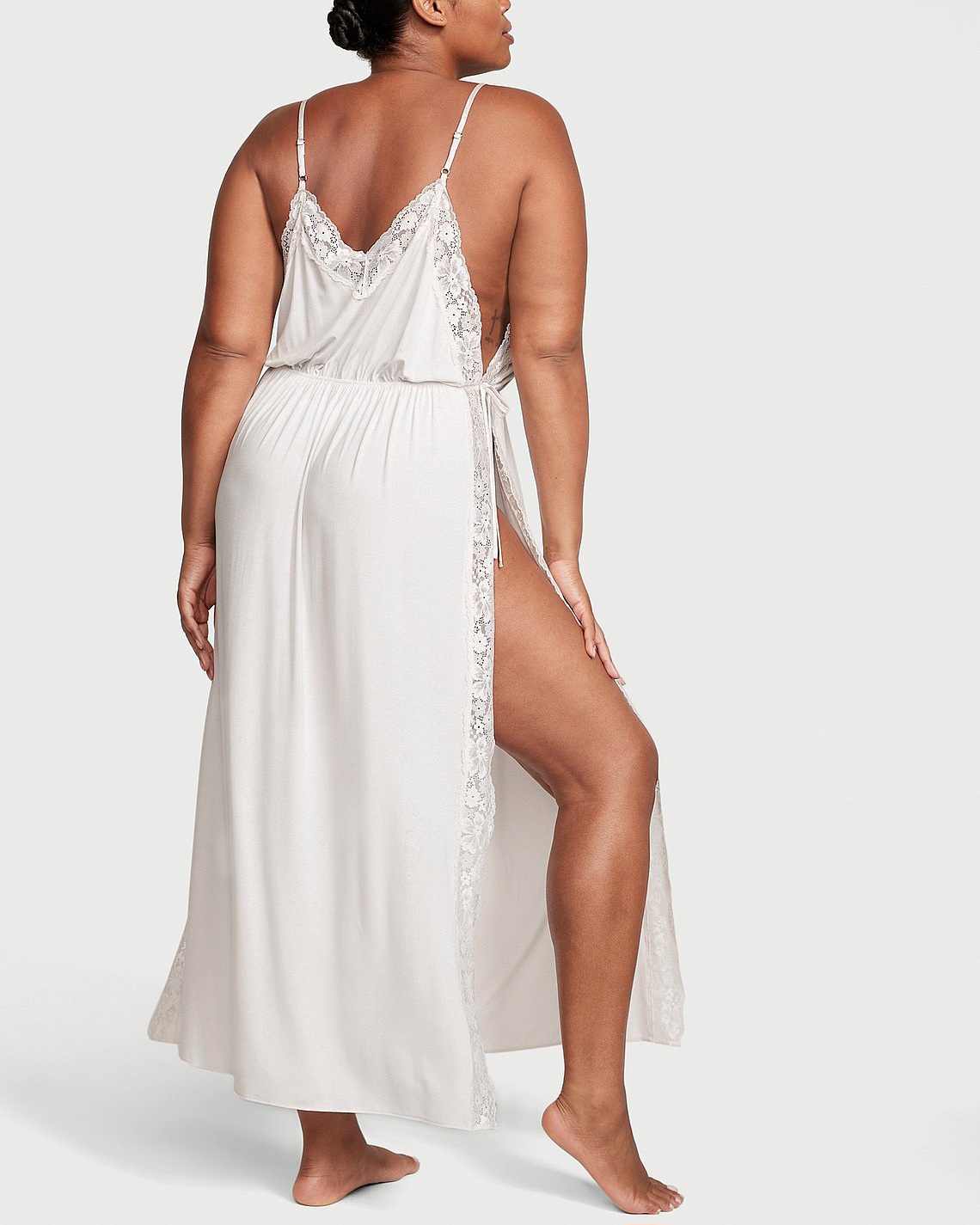 Віддай перевагу гламуру в цьому максі-платті з глибокими вирізами з боків, що надають сексуальності. Пеньюар виготовлений з модалу і доповнений вінтажним мереживом.