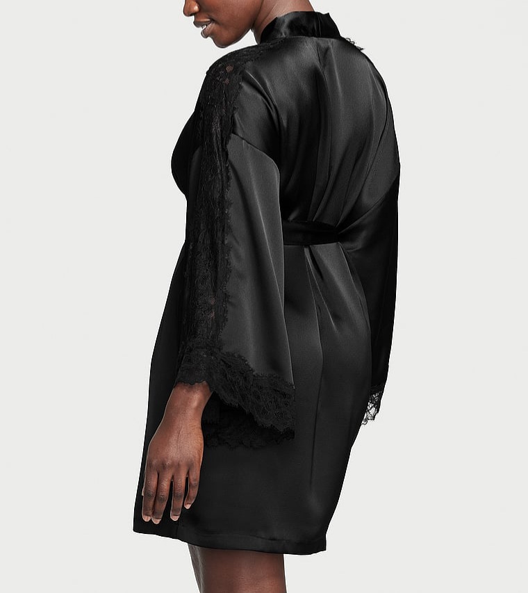 Сучасний погляд на класичне кімоно. Розкішний короткий атласний халат з мереживними вставками – це ідеальний вибір для тих, хто цінує комфорт та стиль.